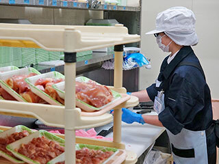 ・鶏肉・豚肉などのトレーへの盛り付け